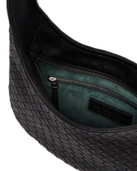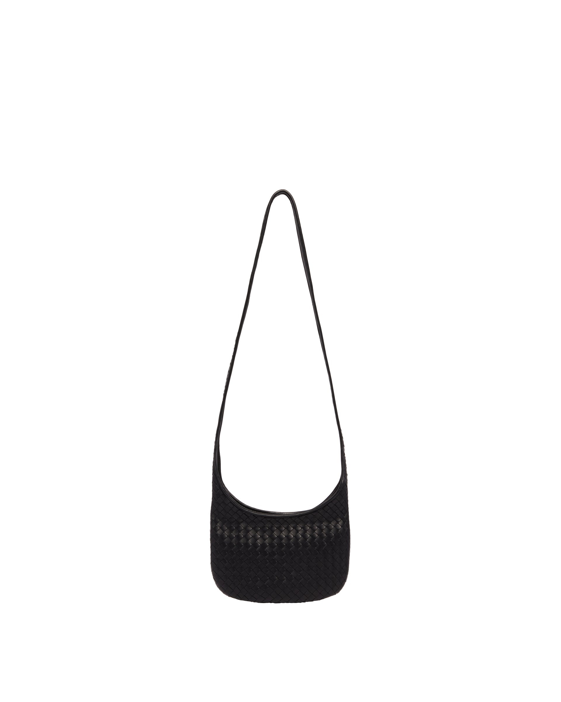 Bottega Veneta Black Veneto Crossbody Bag. Soft black nappa leather with the iconic Intrecciato weave, tone-on-tone integrated shoulder strap, one internal zip pocket, and zip closure. Suede lining, rounded silhouette, silver-tone hardware. Size (cm): 26X17X3 DETAILS Model: 836918V5RI18803 Composition: 100% Leather Made in: ITALY Season: FW25-26
