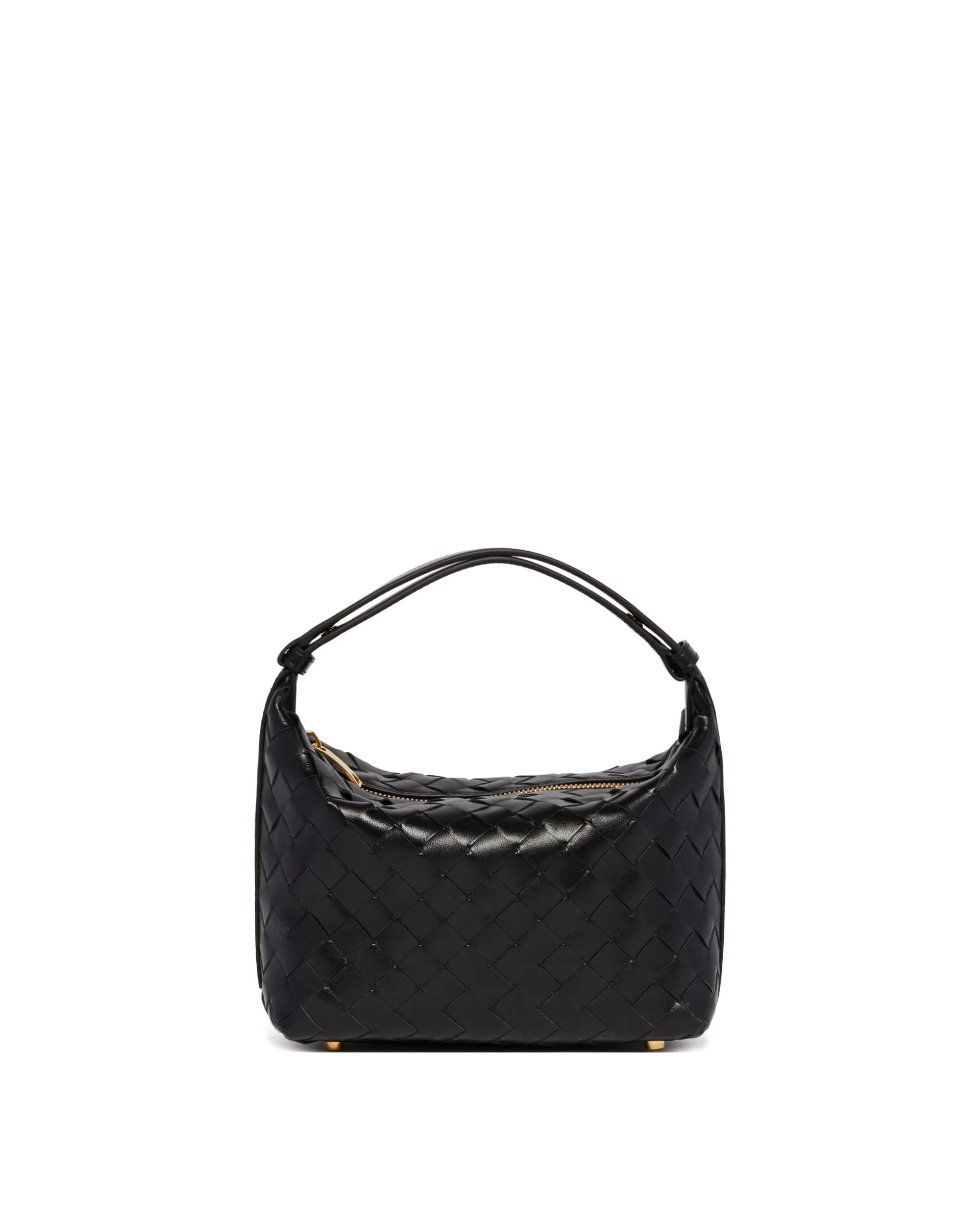 Bottega Veneta Wallace Black Leather Bag. Black leather with iconic woven design, adjustable shoulder strap with press button. Single compartment, zip closure, gold-tone hardware, lined interior. DETAILS Model: 754443V3IV18425 Composition: 100% Leather Made in: ITALY Season: SS25