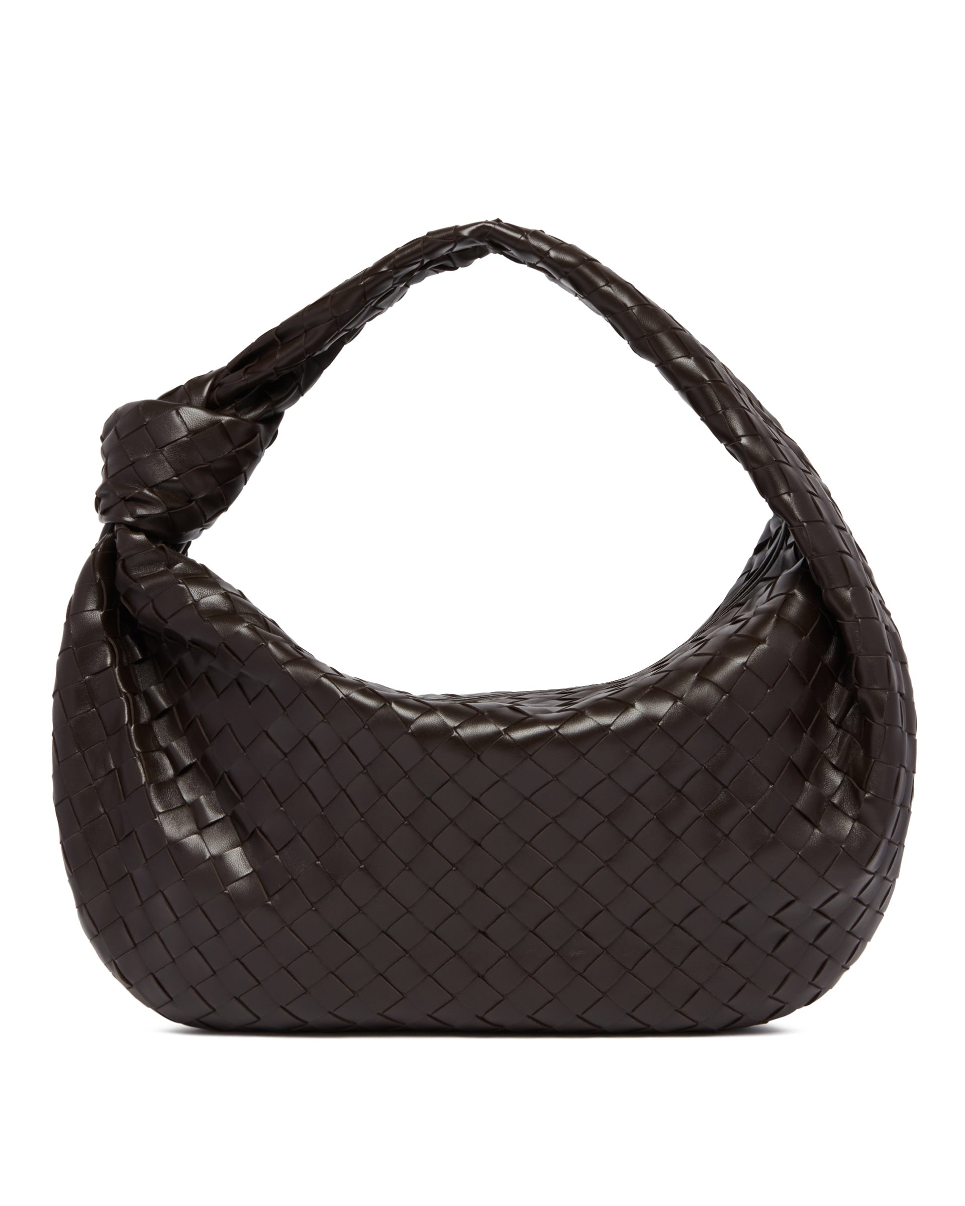 Bottega Veneta Brown Small Jodie Bag. Crafted in pure brown leather with iconic Intrecciato pattern. Top handle with signature knot, top zip fastening, single compartment, gold-toned hardware, lined. Size (cm): 48X40X16 DETAILS Model: 600261VCPP02132 Composition: 100% LEATHER Made in: Italy Season: FW25-26