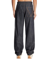 Bottega Veneta Indigo Straight-Leg Jeans. Cotton with an indigo rinsed wash, suede patch with the Intrecciato pattern on the back. Regular waist, straight-leg fit, button closure, regular fit. Pedro is 185 cm and he is wearing size 46. DETAILS Model: 837474V5SN04245 Composition: 100% Cotton Made in: ITALY Season: FW25-26