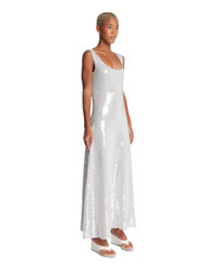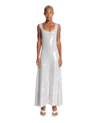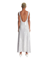 Bottega Veneta Light Gray Viscose Sequin Dress. Gray lightweight viscose adorned with shimmering sequins throughout. Round neckline, zip closure, regular fit. Carol is 178 cm and she is wearing size XS. DETAILS Model: 724937V2JP01243 Composition: 100% Viscose Made in: ITALY Season: FW25-26