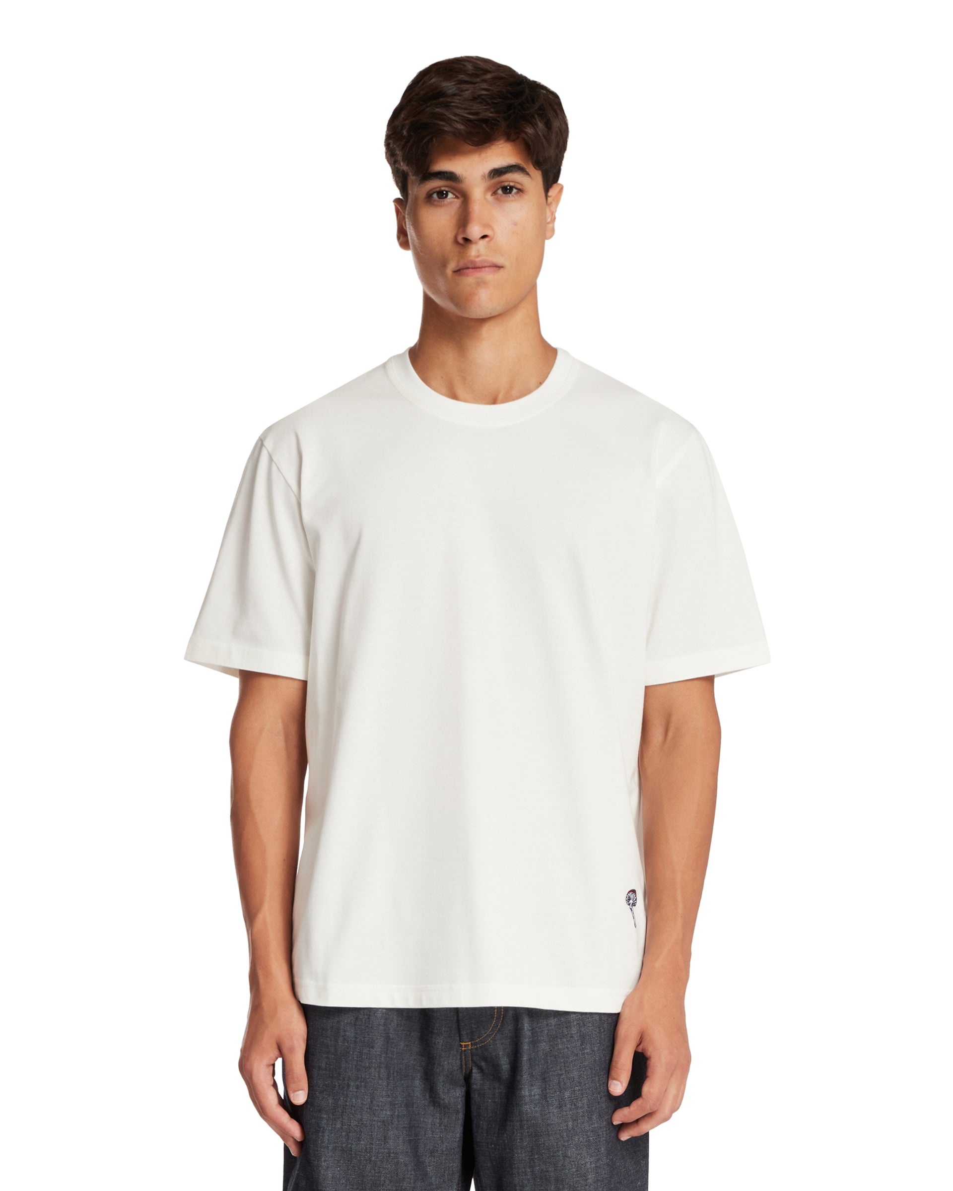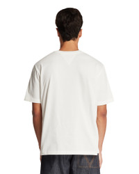 Bottega Veneta White Crewneck T-Shirt with Embroidery. White cotton, crewneck, short sleeves, straight hem, mushroom embroidery on one side. Regular fit. Pedro is 185 cm and he is wearing size XL. DETAILS Model: 838959V4N509071 Composition: 100% Cotton Made in: ITALY Season: FW25-26