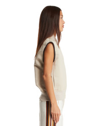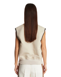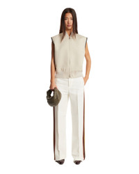 Bottega Veneta White Twill Gilet. White cotton blend and silk with contrasting details. Stand-up collar, sleeveless design, structured shoulders, front zip fastening, side pockets, elasticized straight hem. Isla is 176 cm and she is wearing size 40. DETAILS Model: 838234V5PT02674 Composition: 100% Cotton Made in: ITALY Season: FW25-26