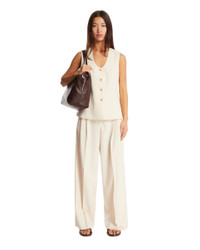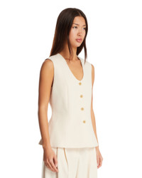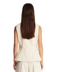 By Malene Birger White Merlin Vest. White viscose blend, sleeveless, V-neck, front button closure, single-breasted silhouette, back slit. Regular fit. Isla is 176 cm and she is wearing size 36. DETAILS Model: 1032751EE Composition: 69% Polyester, 30% Viscose Made in: ROMANIA Season: FW25-26