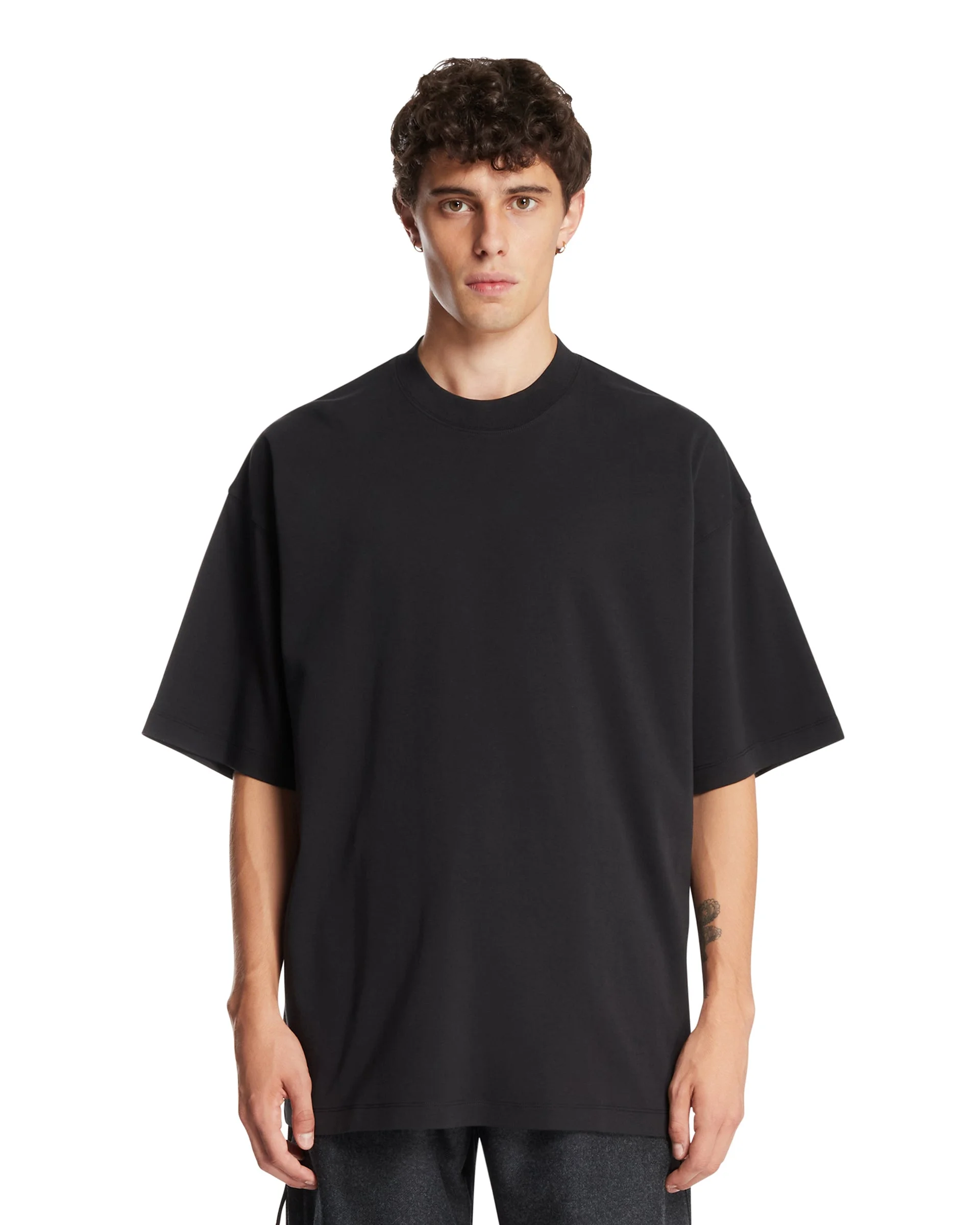 Darkpark Black Mick Cotton T-Shirt. Black cotton, crew neck, short sleeves, dropped shoulders, straight hem. Relaxed fit. Davide is 185 cm and he is wearing size L. DETAILS Model: MJE09JER010099 Composition: 100% Cotton Made in: PORTUGAL Season: FW25-26