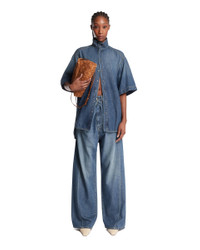 Darkpark Blue Crossed Jeans. Blue cotton and lyocell, washed finish, hidden front cross closure, belt loops, five-pocket structure, branded label on the back, oversized fit, straight hem. Vania is 179 cm and she is wearing size 25. DETAILS Model: WTR19TBL01W075 Composition: 64% Cotton, 36% Lyocell Made in: ITALY Season: SS26
