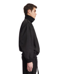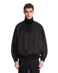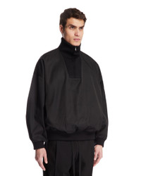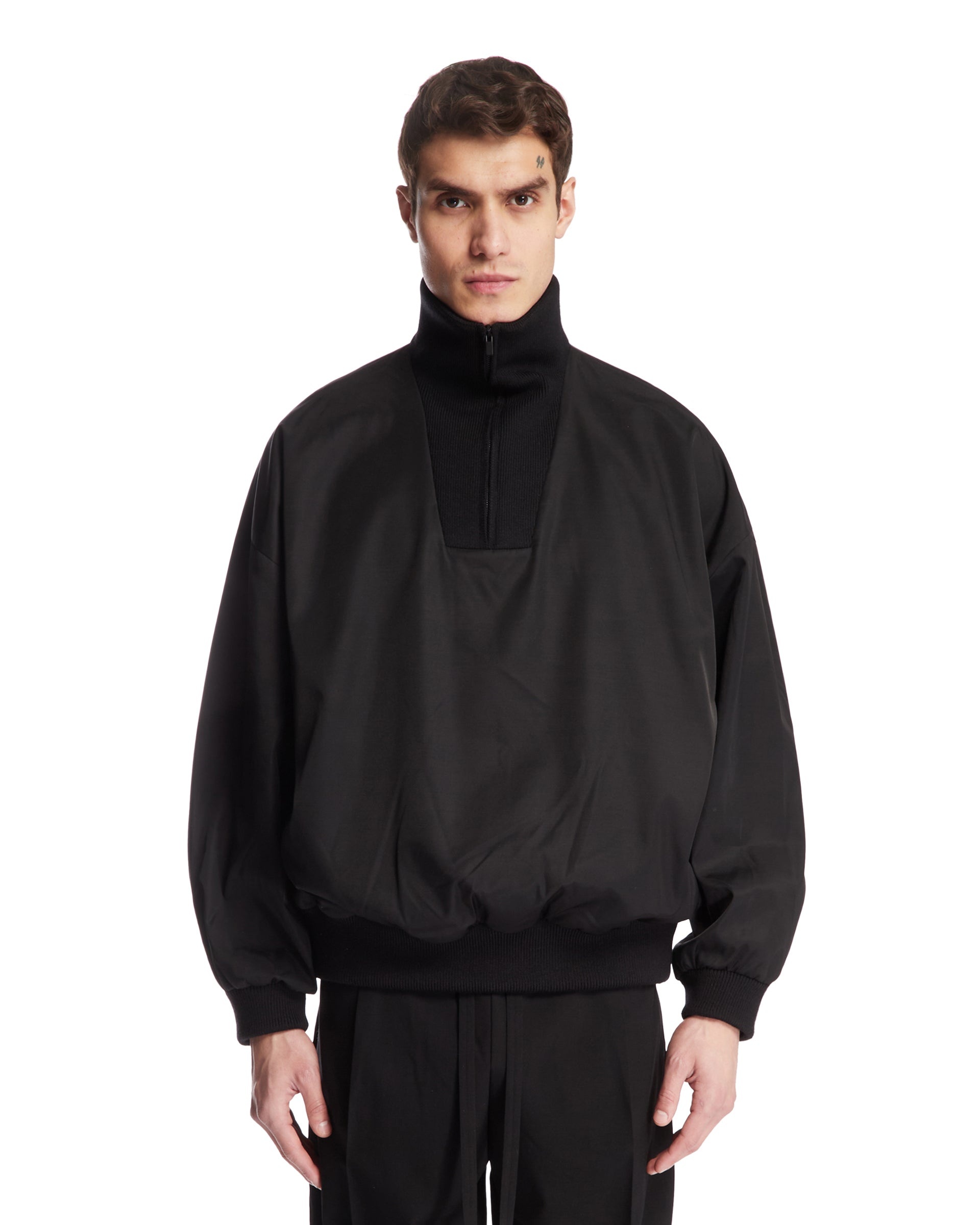Fear Of God Black High Collar Sweater. Black wool and technical fabric, high collar with zip, long sleeves, ribbed hem and cuffs, panelled structure, iconic logo tag on the back, straight hem. Leandro is 187 cm and he is wearing size M. DETAILS Model: FGE230308NYWBLACK Composition: 60% Polyamide, 40% Wool Made in: ITALY Season: SS25