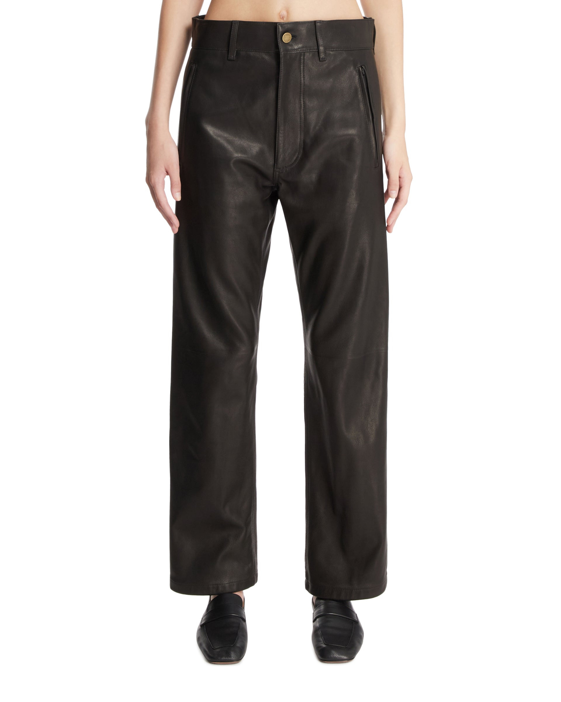 Fear Of God Black Leather Pants. Black leather, regular waist, front button and zip closure, belt loops, four-pocket design, straight leg, regular fit. Perla is 176 cm and she is wearing size 44. DETAILS Model: FG25FW55552LTH001 Composition: 100% Leather Made in: ITALY Season: FW25-26