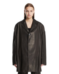 Fear Of God Black Oversized Leather Jacket. Black leather, long sleeves, classic collar, front button closure, dropped shoulders, oversized fit, iconic logo label at the back. Perla is 176 cm and she is wearing size S. DETAILS Model: FG25FW50510LTH001 Composition: 100% Leather; Lining: 53% Cupro, 47% Polybutilene Made in: ITALY Season: FW25-26