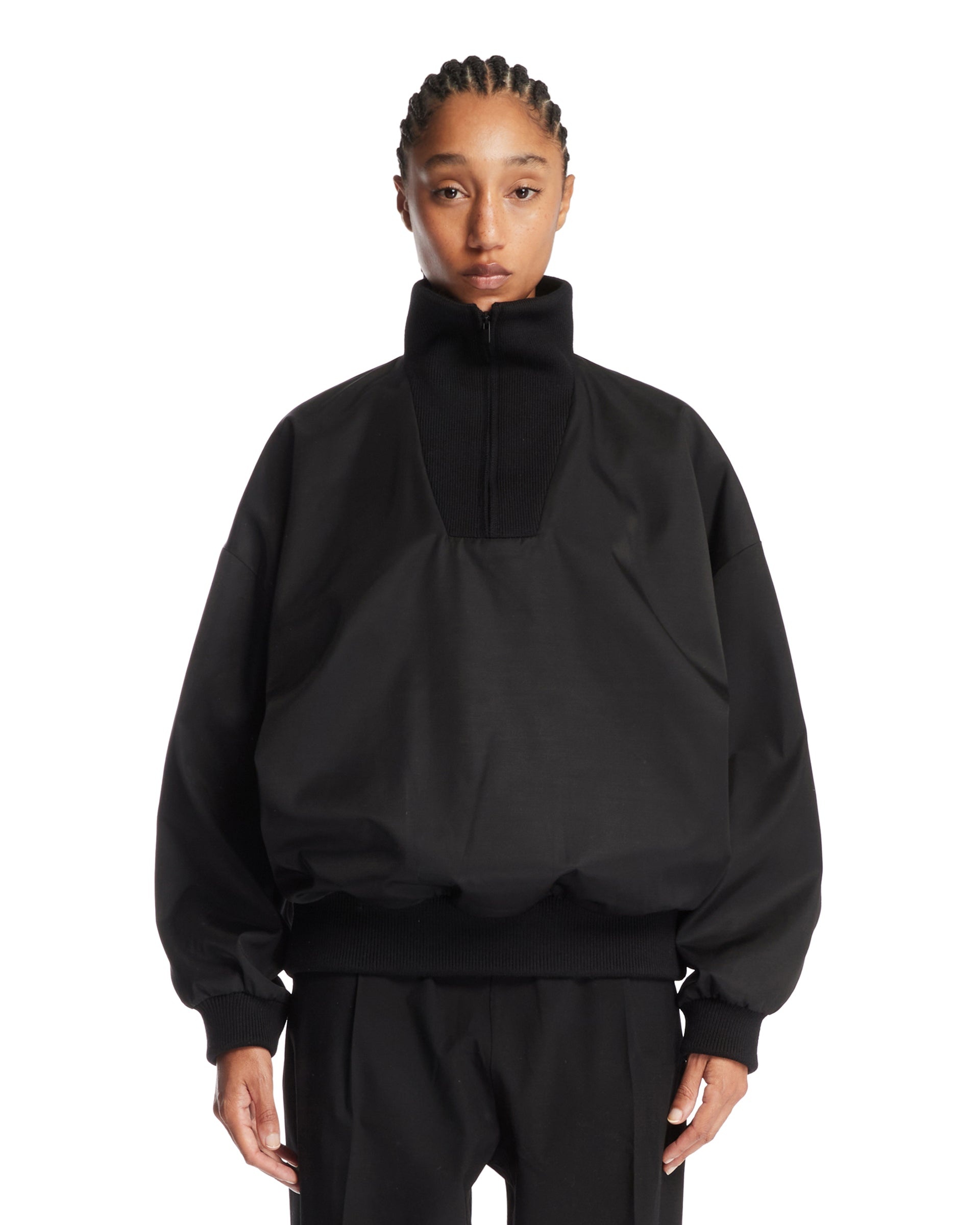 Fear Of God Black Turtleneck Sweater. Black wool and technical fabric, high collar with zip, long sleeves, ribbed hem and cuffs, panelled structure, iconic branded tag on the back, straight hem, lined. Aline is 180 cm and she is wearing size S. DETAILS Model: FGE230308NYW_BLACK Composition: 60% Polyamide, 40% Wool; Lining: 100% Polyester Made in: ITALY Season: SS25