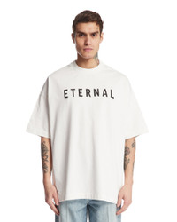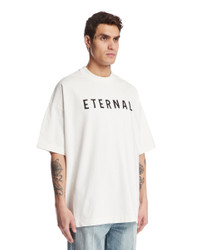 Fear Of God White Printed T-Shirt. White cotton, crew neck, short sleeves, dropped shoulders, front print with lettering, iconic logo tag on the back, oversized silhouette, straight hem. Leandro is 187 cm and he is wearing size M. DETAILS Model: FGE2505101HWJWHITE Composition: 100% Cotton Made in: ITALY Season: SS25