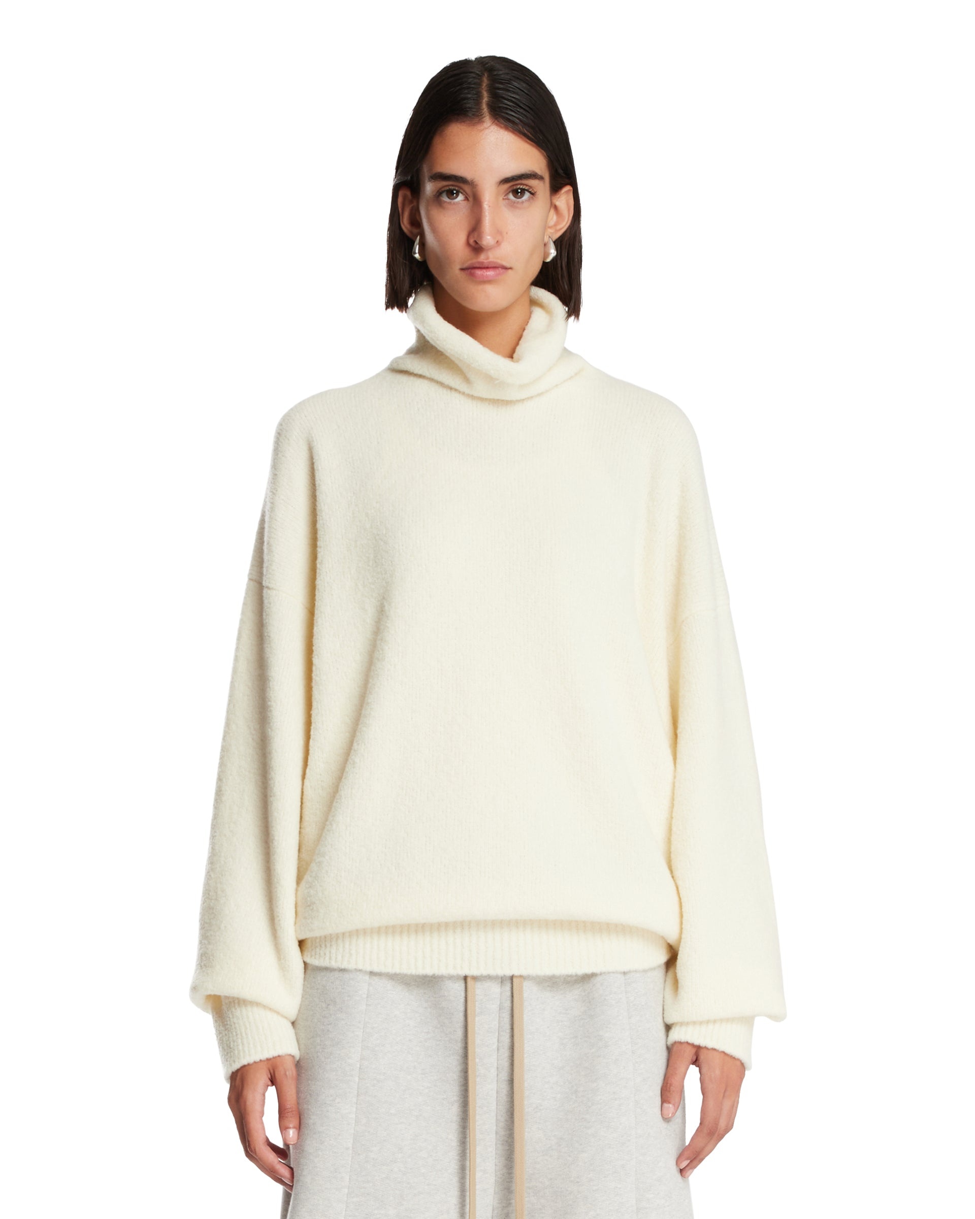Fear Of God White Turtleneck Pullover. White wool blend. Turtleneck with back slit, long sleeves, ribbed hem and cuffs, iconic logo patch on the back, relaxed silhouette, straight hem. Anna is 178 cm and she is wearing a size S. DETAILS Model: FG25FW20209WBO051 Composition: 80% Wool, 20% Polyamide Made in: ITALY Season: FW25-26