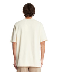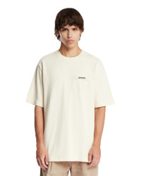 Jacquemus Beige Le T-Shirt Gros Grain. Beige cotton, crew neck, short sleeves, embroidered gros-grain logo on the chest, regular fit. Freddy is 187 cm and he is wearing size XL. DETAILS Model: 25HTSM00133AJ00226150 Composition: 100% Cotton Made in: PORTUGAL Season: FW25-26