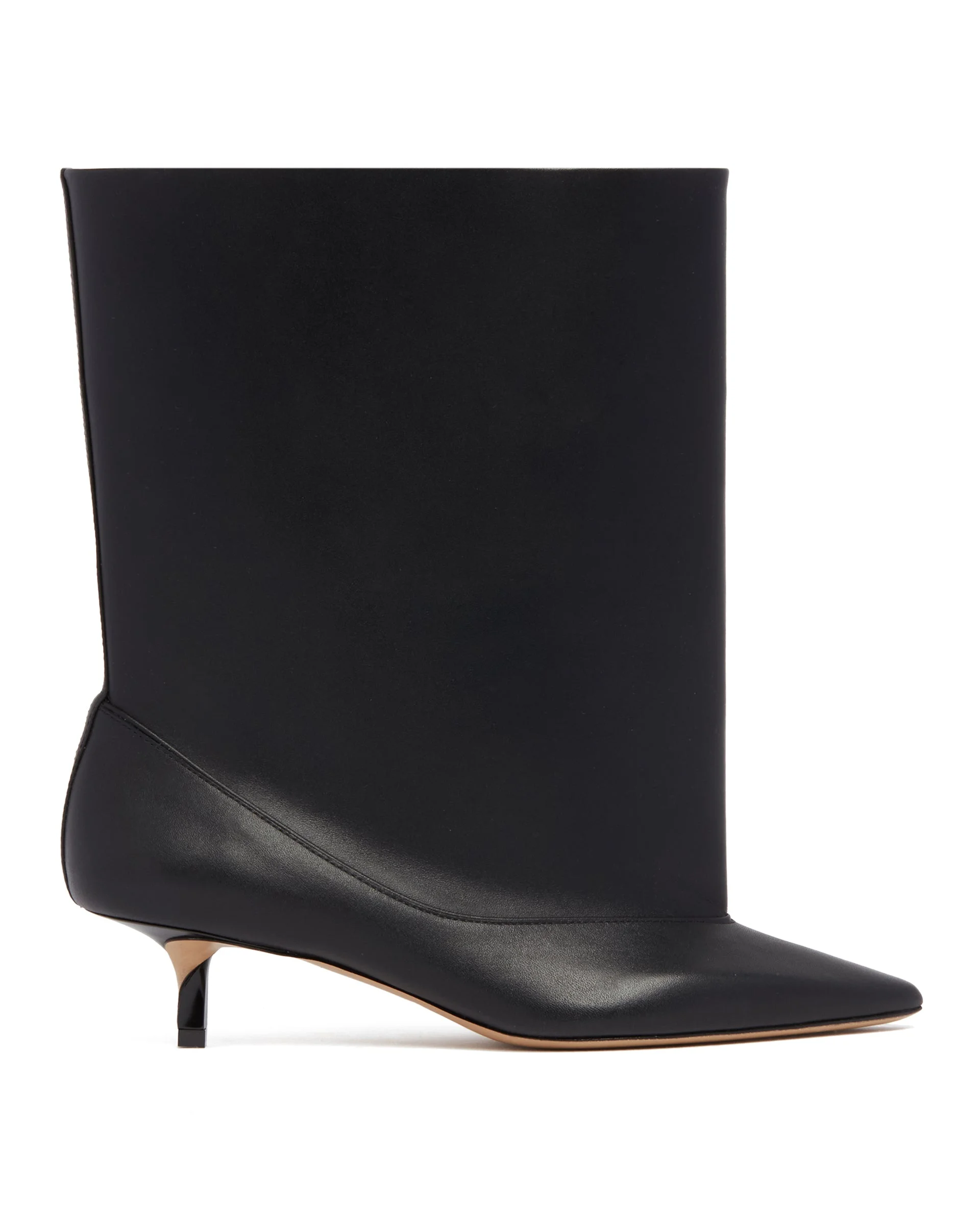 Jacquemus Black Tourni Leather Boots. Black leather upper, tubular construction with smooth leather decollete in a trompe-l'oeil effect, pointed toe, mid-calf cut. Leather insole and lining, asymmetrical braided heel with lacquered finish, contrast sole. Heel Height: 5 cm DETAILS Model: FOW00177AC17A02990 Composition: 100% Leather Made in: ITALY Season: FW25-26