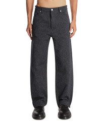 Jil Sander Blue Cotton Pants. Indigo cotton, slub effect, straight leg, front button closure, belt loops, five-pocket design, leather logo patch on the back. Pedro is 185 cm and he is wearing size 31. DETAILS Model: J22KA0324J45303406 Composition: 100% Cotton Made in: ITALY Season: FW25-26