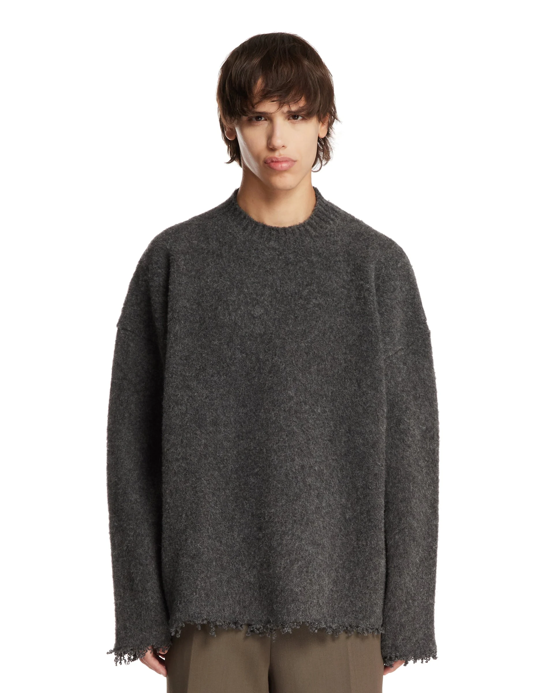 Jil Sander Gray Sweater with Fringed Hem. Gray wool, crew neck, long sleeves, fringed hem. Dropped shoulder design, relaxed fit. Freddy is 187 cm and he is wearing size 50. DETAILS Model: J47GP0197J14792025 Composition: 100% Wool Made in: ITALY Season: FW25-26