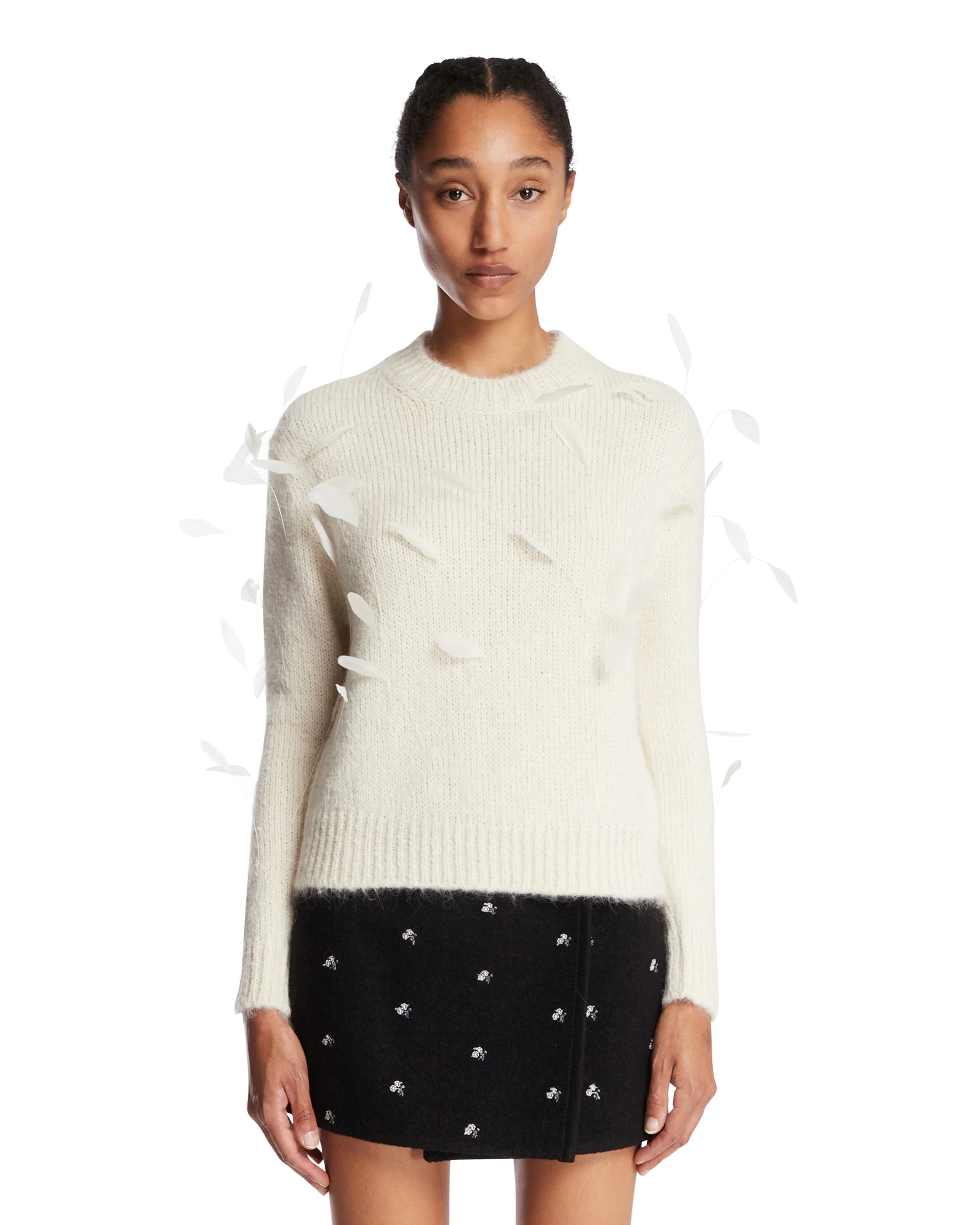 White Alpaca Sweater with Feathers