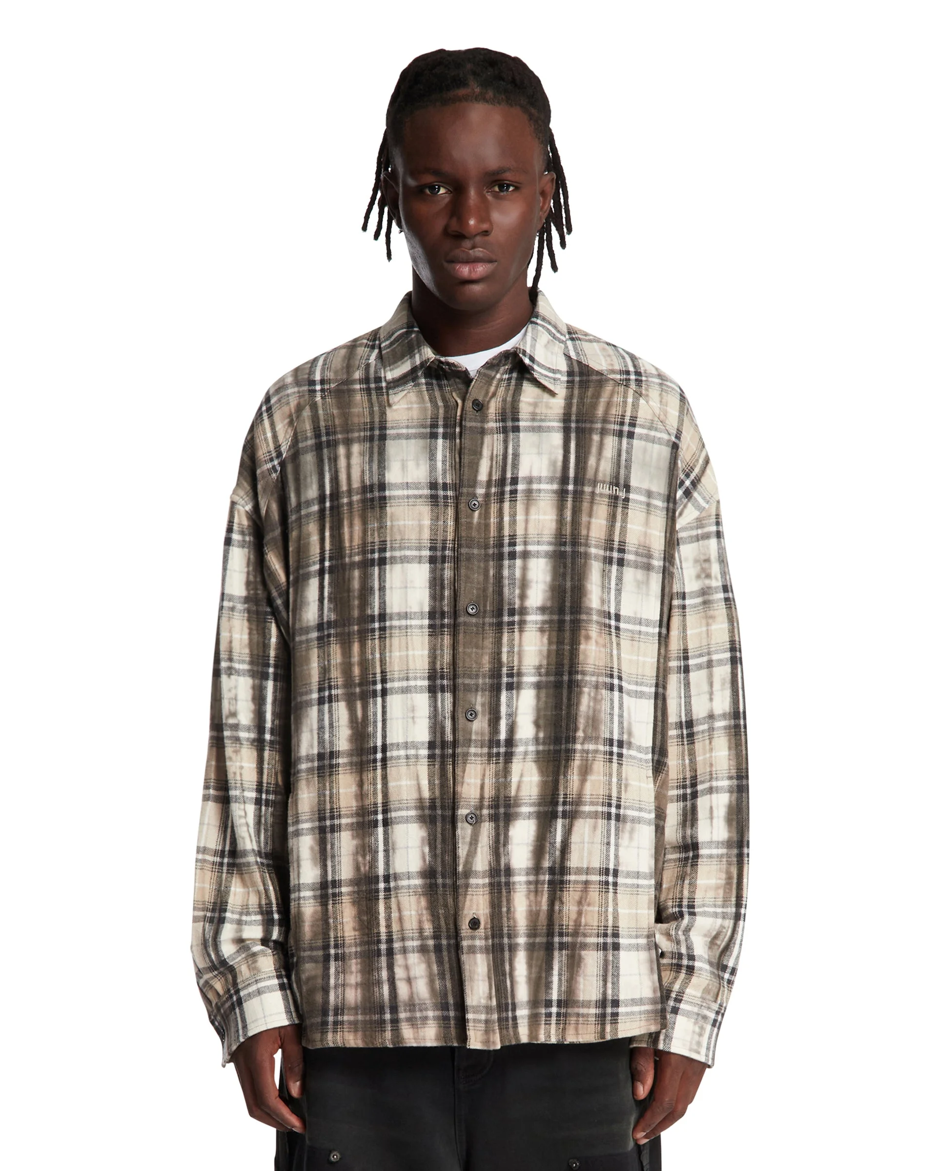 Juun.J Beige Checked Cotton Shirt. Beige cotton blend, dirty-effect check pattern, classic collar, long sleeves, front button closure, buttoned cuffs, rounded hem, embroidered logo on the chest, relaxed fit. Cheick is 190 cm and he is wearing size 50. DETAILS Model: JC5964P06A Composition: 81% Cotton, 18% Polyester, 1% Other Fiber Made in: KOREA Season: FW25-26