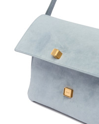 Khaite Sky Blue Audrey Bag. Sky blue suede leather, adjustable and removable shoulder strap, flap closure with magnetic buckle, gold-embossed logo on the back, leather lining, gold-tone hardware. Size (cm): 26X14X10 DETAILS Model: H3032726396 Composition: 100% Leather; Detail: 100% Brass Made in: ITALY Season: FW25-26