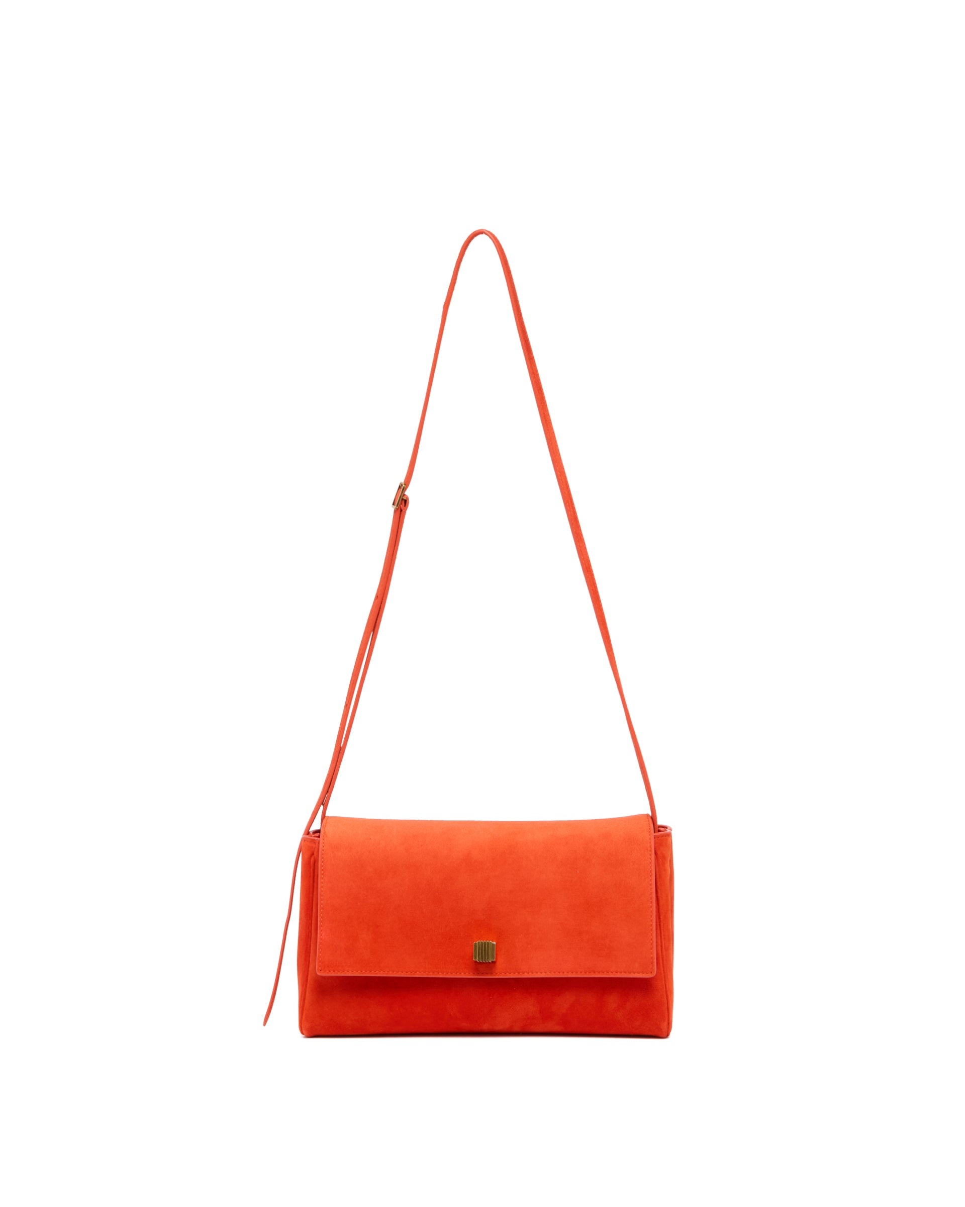 Khaite Sky Orange Audrey Bag. Orange suede leather, adjustable and removable shoulder strap, flap closure with magnetic buckle, gold-embossed logo on the back, leather lining, gold-tone hardware. Size (cm): 26X14X10 DETAILS Model: H3032726712 Composition: 100% Leather; Detail: 100% Brass Made in: ITALY Season: FW25-26