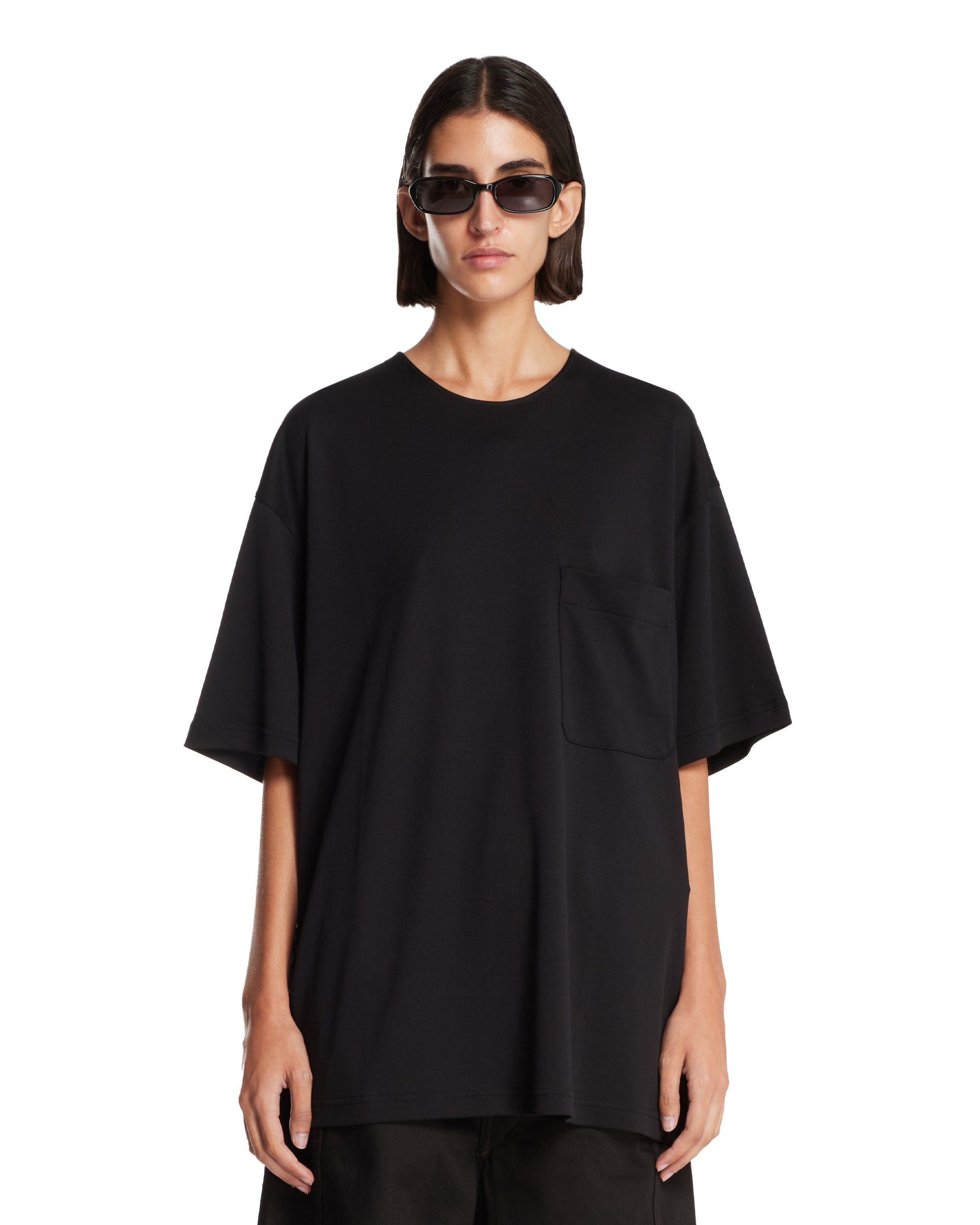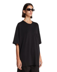 Lemaire Black Cotton Pocket T-Shirt. Black cotton and silk, crew neckline, short sleeves, dropped shoulders. Chest pocket, straight hem, relaxed fit. Anna is 178 cm and she is wearing size S. DETAILS Model: TO1457LJ1043BK999 Composition: 80% Cotton, 20% Silk Made in: PORTUGAL Season: FW25-26