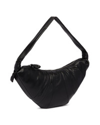 Lemaire Black Large Croissant Bag. Black leather, croissant-inspired shape, shoulder strap with knotted details on the sides, top zip closure, flat internal pocket, external zip pocket, tone-on-tone stitching, silver-tone hardware, fully lined. Size (cm): 56X23X7 DETAILS Model: BG0000LL095BK999 Composition: 100% Leather; Details:100% Brass Made in: SPAIN Season: SS26