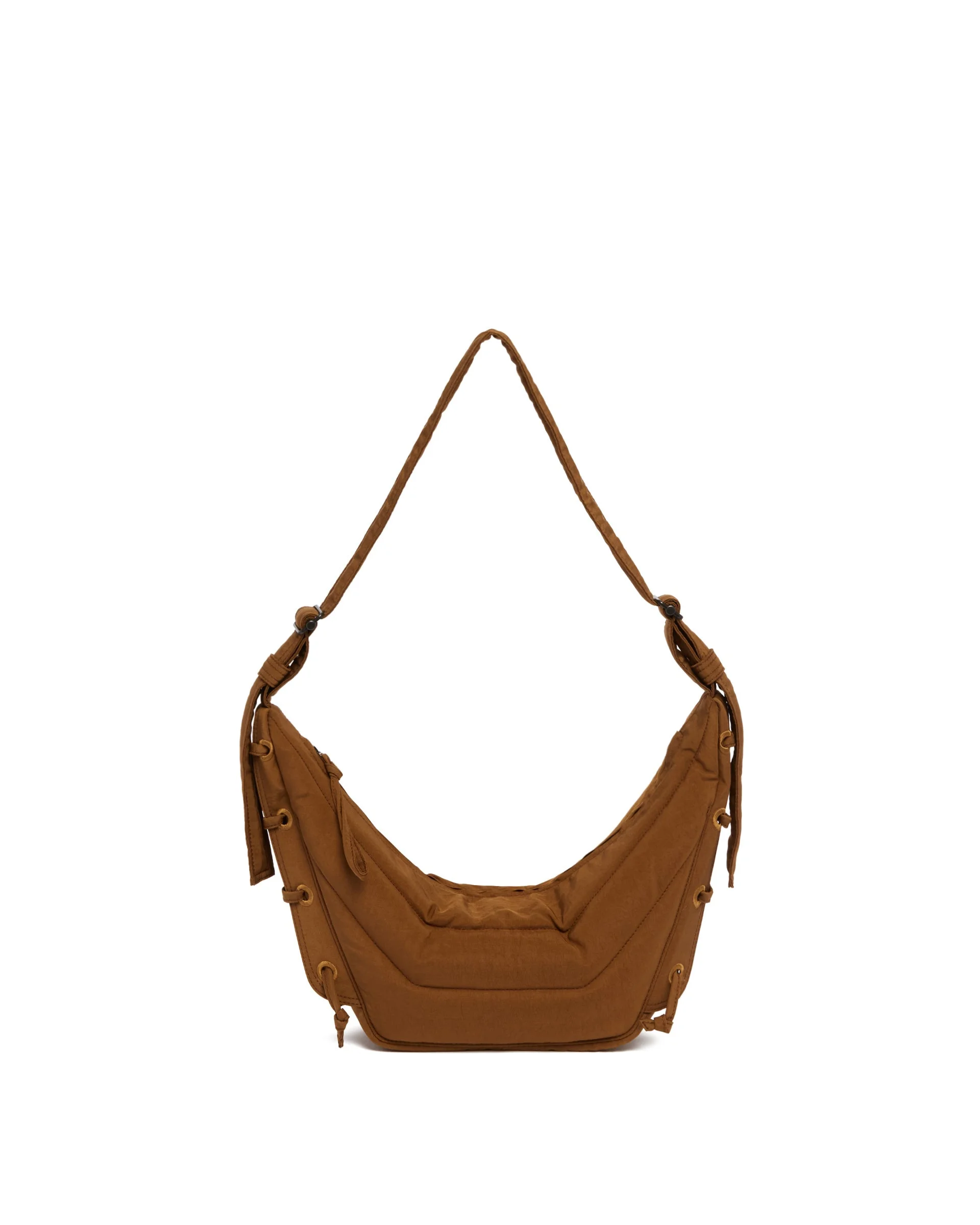 Lemaire Brown Small Soft Game Bag. Brown cotton canvas, water-repellent finish, adjustable padded shoulder strap with a metal buckle, zip closure with a tone-on-tone zipper pull, nylon lining, eyelet and drawstring detailing. The bag includes an internal zip pocket. Size (cm): 52X19X13 DETAILS Model: BG293LF1330_BR430 Composition: 100% Polyamide Made in: ITALY Season: FW25-26