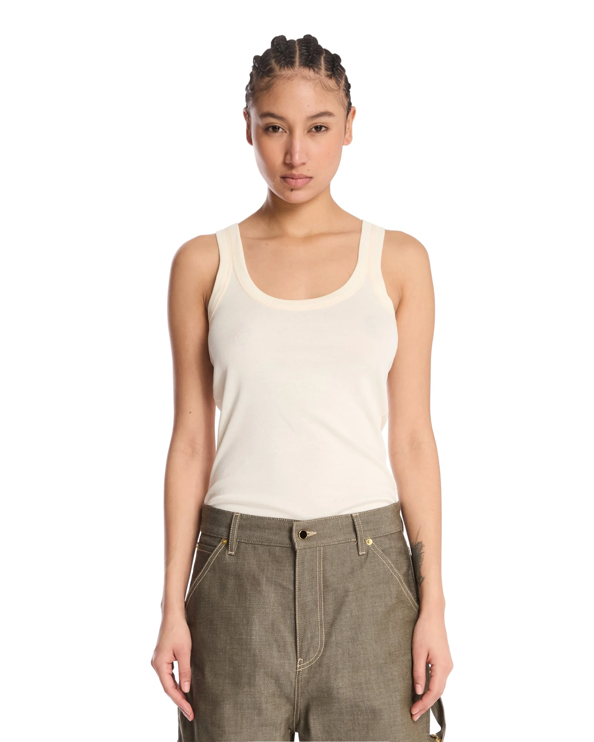 Lemaire White Cotton Top. White cotton, round neckline, sleeveless, straight hem, fitted silhouette. Eimy is 178 cm and she is wearing size S. DETAILS Model: TO1199LJ1016WH048 Composition: 100% Cotton Made in: PORTUGAL Season: SS25