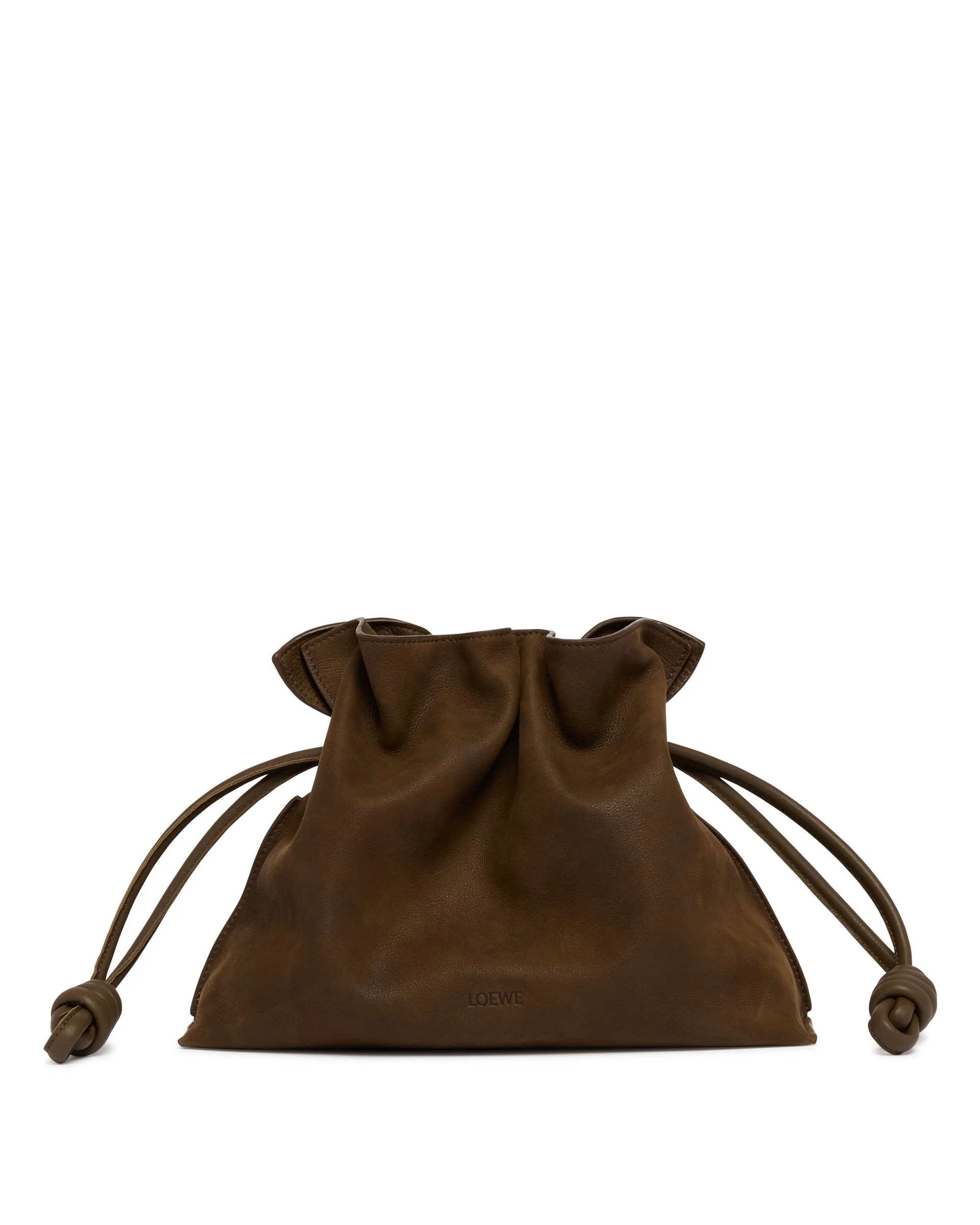 Loewe Brown Medium Flamenco Bag. Brown leather, gathered silhouette, iconic side knots, suede leather lining, adjustable tone-on-tone leather shoulder strap, magnetic closure, embossed logo on the front. Size (cm): 30X24X10 DETAILS Model: a411fc1xdt6423 Composition: 100% Leather; Details: 100% Brass Made in: SPAIN Season: SS26