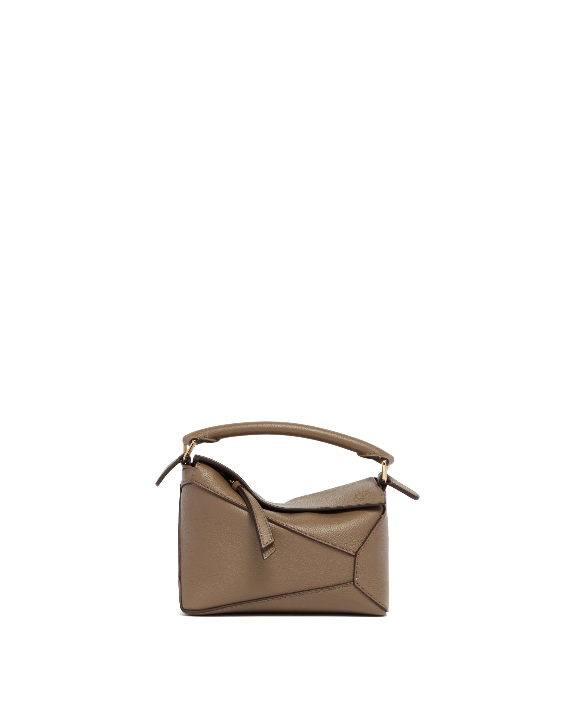 Loewe Brown Mini Puzzle Leather Bag. Brown leather, iconic Puzzle design, tone-on-tone leather top handle, removable and adjustable shoulder strap. Hidden zip closure, embossed Anagram logo on top, gold-tone hardware, fully lined. Size (cm): 17X12X7 DETAILS Model: A510P88X603170 Composition: 100% Leather Made in: SPAIN Season: FW25-26