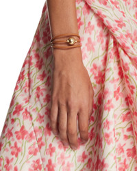 Loewe Brown Pebble Bracelet. Brown leather, multi-wrap tubular strap, Pebble detail with engraved Anagram logo, magnetic closure, gold-tone hardware. DETAILS Model: JJ07240X012599 Composition: 100% Leather; Detail: 100% Brass Made in: SPAIN Season: FW25-26