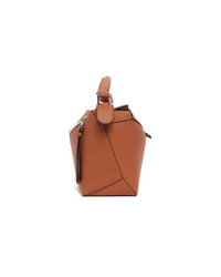 Loewe Brown Small Puzzle Bag. Brown leather, iconic Puzzle design, tone-on-tone leather top handle, removable and adjustable shoulder strap. Hidden top zip closure, embossed Anagram logo on the upper part, silver-tone hardware, lined interior. Size (cm): 24X16X10 DETAILS Model: A510P60XAC2530 Composition: 100% Leather; Details: 100% Brass Made in: SPAIN Season: SS26