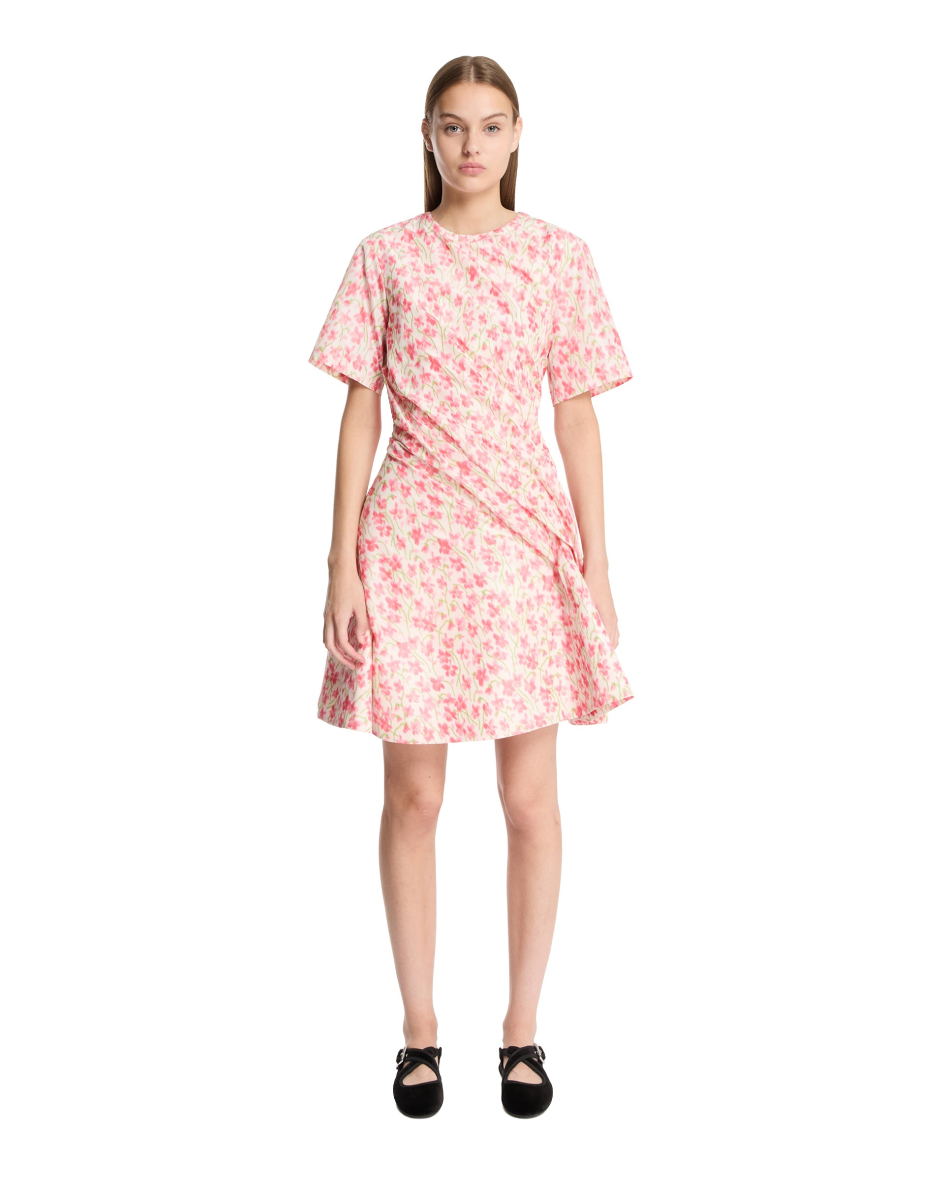 Loewe Floral Silk-Blend Taffeta Dress. Silk-blend taffeta with an all-over floral pattern and hand-draped asymmetric silhouette. Short sleeves, crew neckline, zip closure at the back. Perla is 176 cm and she is wearing size 36. DETAILS Model: S359Y09XJ42102 Composition: 67% Polyester, 33% Silk; Lining: 85% Viscose, 9% Polyamide, 6% Elastane Made in: SPAIN Season: FW25-26