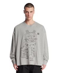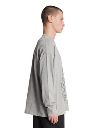 Loewe Gray Printed T-Shirt. Gray cotton, crew neckline, long sleeves, graphic print on front panel, Anagram logo on chest, straight hem. Mitar is 186 cm and he is wearing size XL. DETAILS Model: H526Y24J321440 Composition: 100% Cotton Made in: PORTUGAL Season: SS26