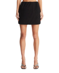 Marie Adam-Leenaerdt Black Mini Skirt. Black technical fabric, elastic waistband, structured design, straight hem, regular fit. Isla is 176 cm and she is wearing size 38. DETAILS Model: S4M80089999 Composition: 50% Polyamide, 50% Polyurethane Made in: ROMANIA Season: FW25-26