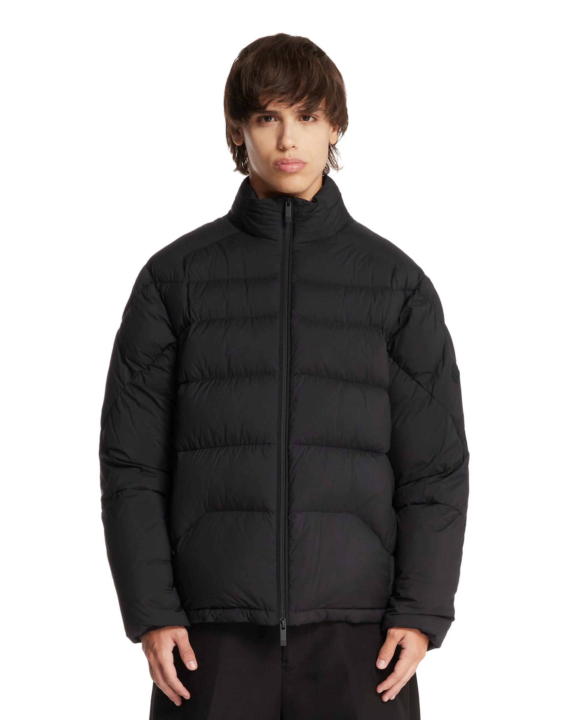 Moncler Black Bardane Down Jacket. Black longue saison fabric, long sleeves, nylon lining, padded model, front zip closure, zippered pockets, elasticated cuffs, adjustable hem. Tone-on-tone logo on the left sleeve, regular fit. Freddy is 187 cm and he is wearing size IV. DETAILS Model: 1A00039597YD999 Composition: 100% Polyester; Padding: 90% Down, 10% Feathers Made in: ROMANIA Season: FW25-26