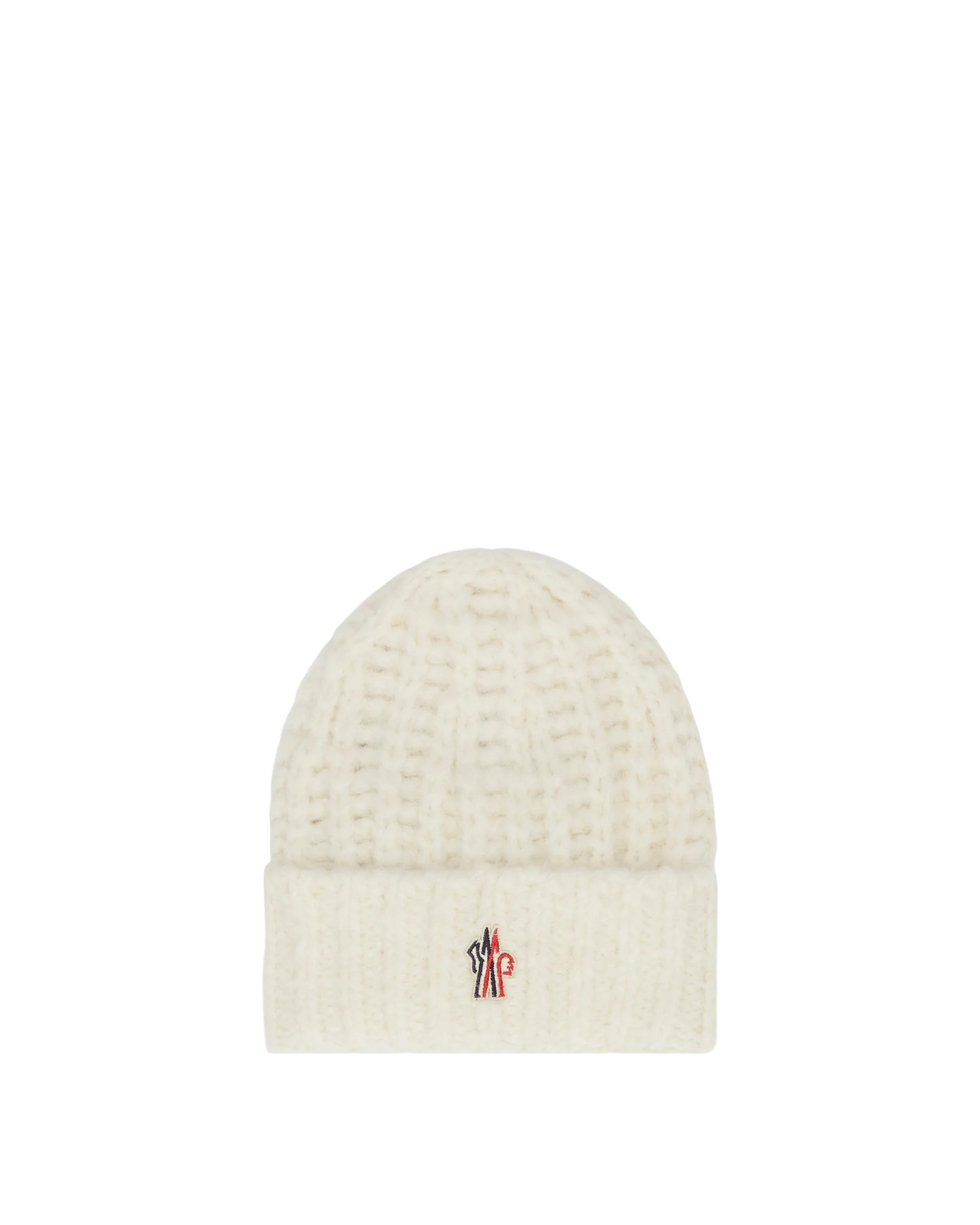 Moncler Grenoble White Ribbed Beanie. White wool blend, alpaca and technical fabric, ribbed knit, Moncler Grenoble logo on the front, folded cuff. DETAILS Model: 3B00001M538104A Composition: 38% Acrylic, 34% Alpaca, 15% Polyamide, 13% Virgin Wool Made in: ITALY Season: FW25-26