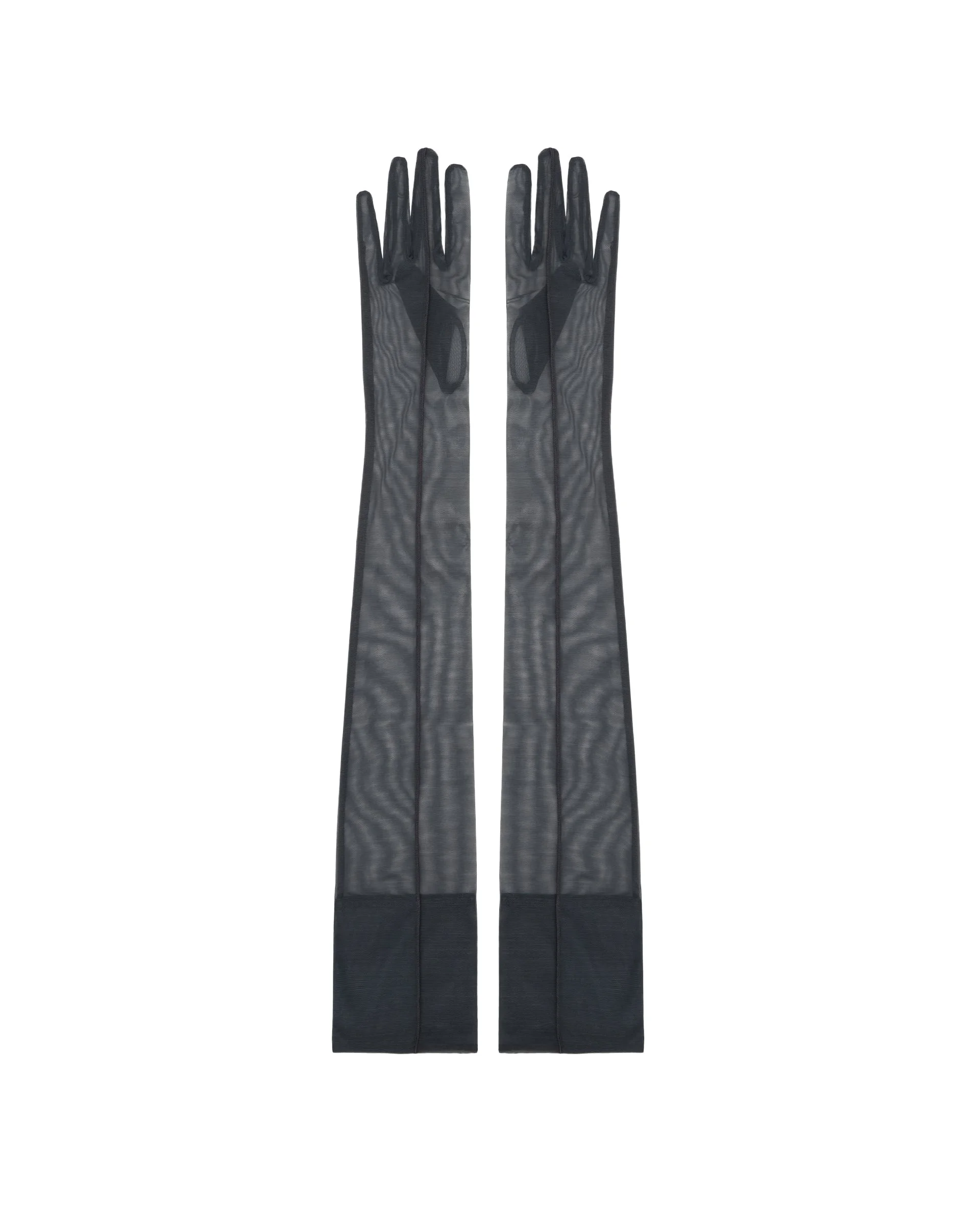 Mugler Gray Re/edit Stretch Gloves. Gray semi-sheer stretch fabric, single-stitch finish, above-the-elbow length. DETAILS Model: COM10GA00095728035 Composition: 83% Polyamide, 17% Elastane Made in: Tunisia Season: FW25-26