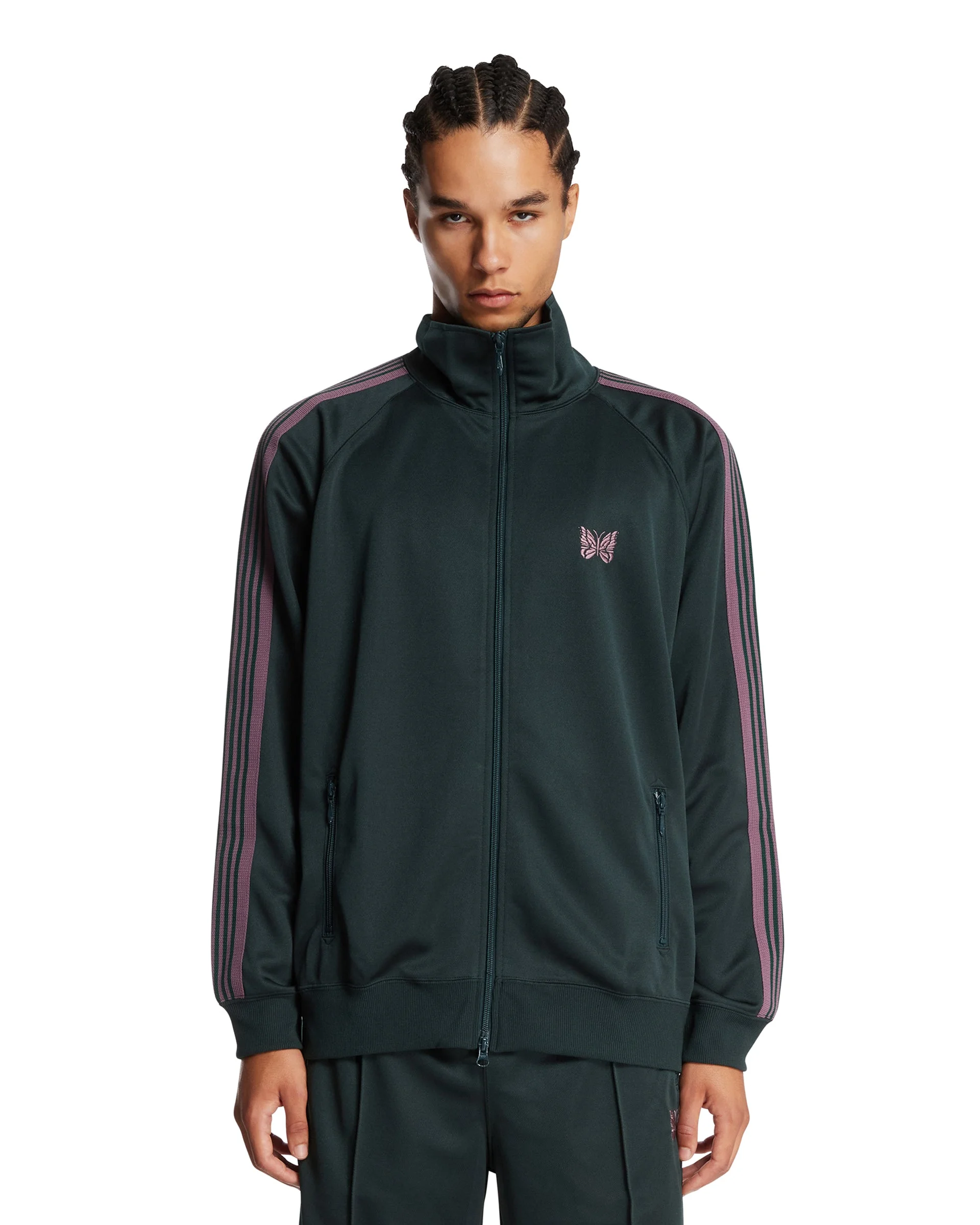 Needles Green Logo Sweatshirt. Green technical fabric, contrasting details, high collar, long sleeves, ribbed hem and cuffs, two side zip pockets, logo on the chest, straight hem. Thiago is 185 cm and he is wearing size XL. DETAILS Model: RW314BGREEN Composition: 100% Polyester Made in: JAPAN Season: FW25-26
