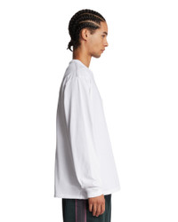 Needles White Long-Sleeve Logo T-Shirt. White cotton, crew neck, long sleeves, ribbed cuffs, chest patch pocket with contrast logo, straight hem. Thiago is 185 cm and he is wearing size XL. DETAILS Model: RW348AWHITE Composition: 100% Cotton Made in: JAPAN Season: FW25-26