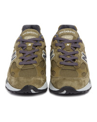 M992 Leather-Trimmed Suede, Nubuck and Mesh Sneakers Green
