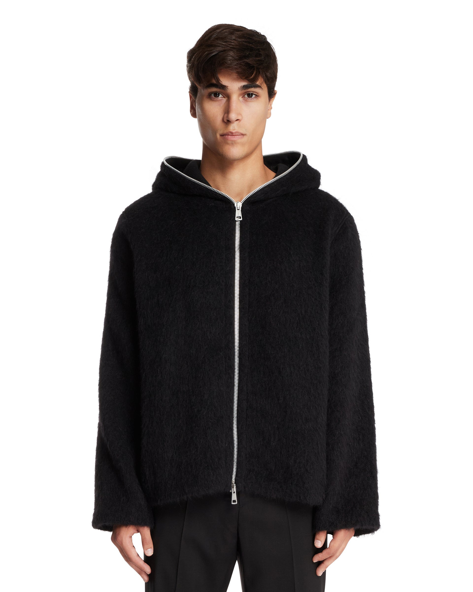 Our Legacy Black Wool Hoodie. Black wool blend, long sleeves, fixed hood, front zip closure, side pockets, straight hem. Relaxed fit. Pedro is 185 cm and he is wearing size 50. DETAILS Model: M4243FBH Composition: 36% Wool, 26% Polyester, 22% Acrylic, 11% Alpaca, 3% Polyamide, 2% Other Fibers Made in: PORTUGAL Season: FW25-26