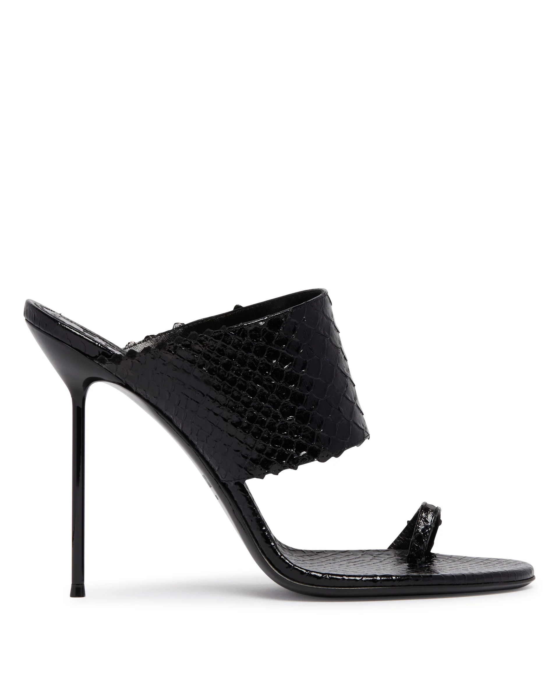Lidia python-effect black leather thong mule