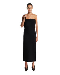 Rier Black Sleeveless Midi Dress. Black wool, sleeveless, midi length, side slit, back zipper closure, regular fit. Alicia is 174 cm and she is wearing size S. DETAILS Model: DRS5WLTBLA Composition: 100% Virgin Wool Made in: ITALY Season: FW25-26