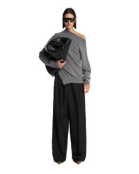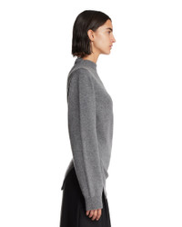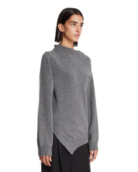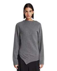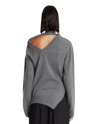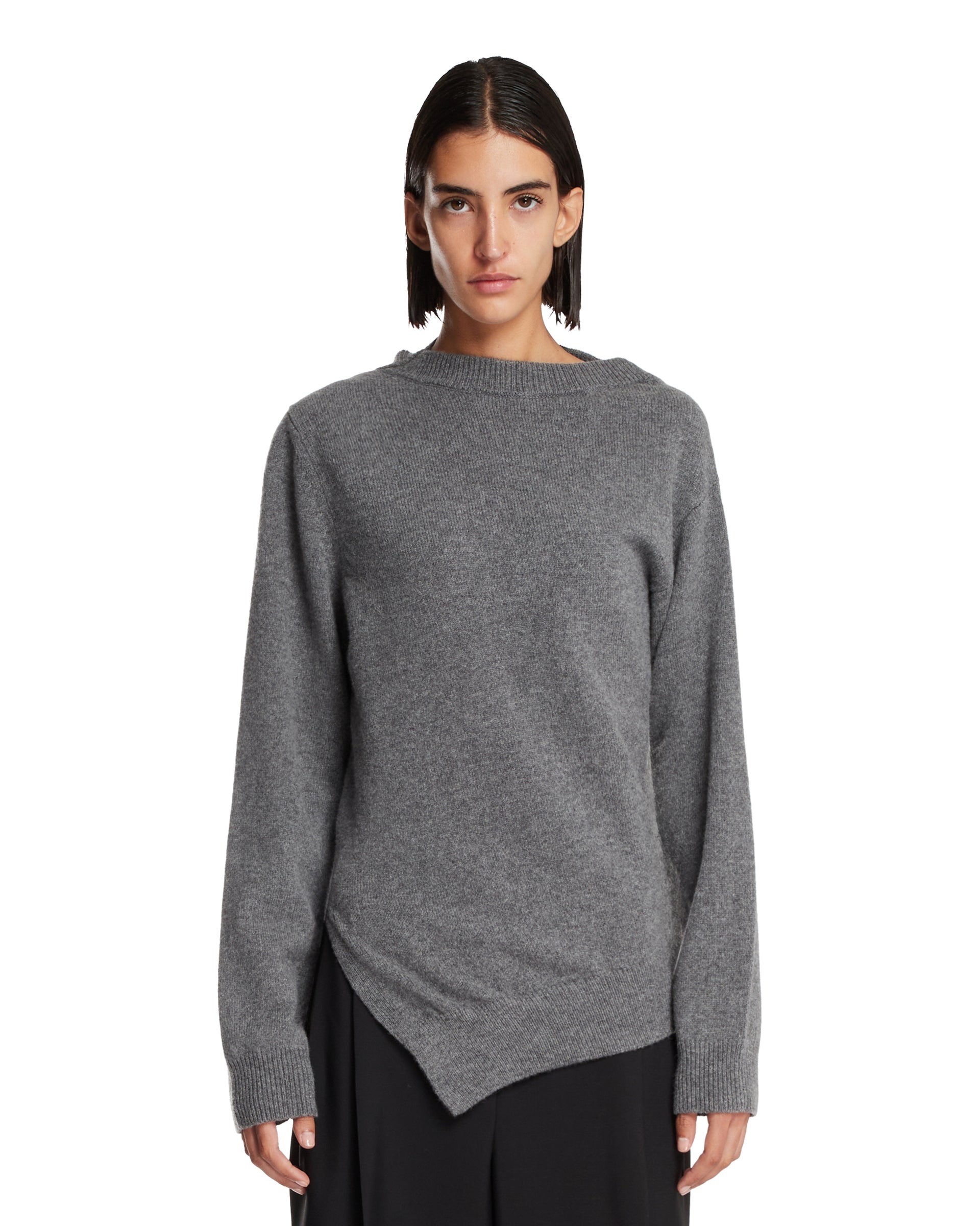 Rohe Gray Convertible Deconstructed Sweater. Grey wool and cashmere blend. Straight neckline with V-back that can also be worn front, long sleeves, ribbed hem and cuffs, side slit, deconstructed details, asymmetrical hem. Alina is 178 cm and she is wearin DETAILS Model: 41623303030301 Composition: 90% Wool, 10% Cashmere Made in: ITALY Season: FW25-26
