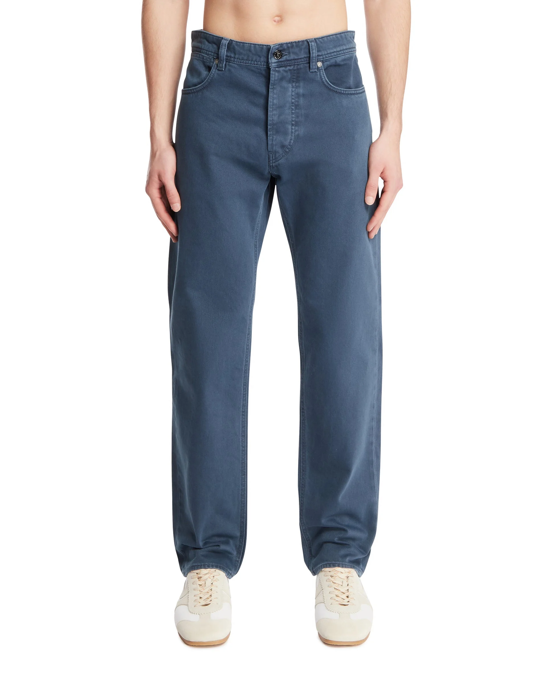 Stone Island Blue Five-Pocket Jeans. Blue cotton denim with a regular waist, five-pocket design, belt loops, straight leg, tone-on-tone stitching, logo label on the back. Regular fit. Gabo is 184 cm and he is wearing size 31. DETAILS Model: S14J100005S0J18V0021 Composition: 100% Cotton Made in: ROMANIA Season: SS26
