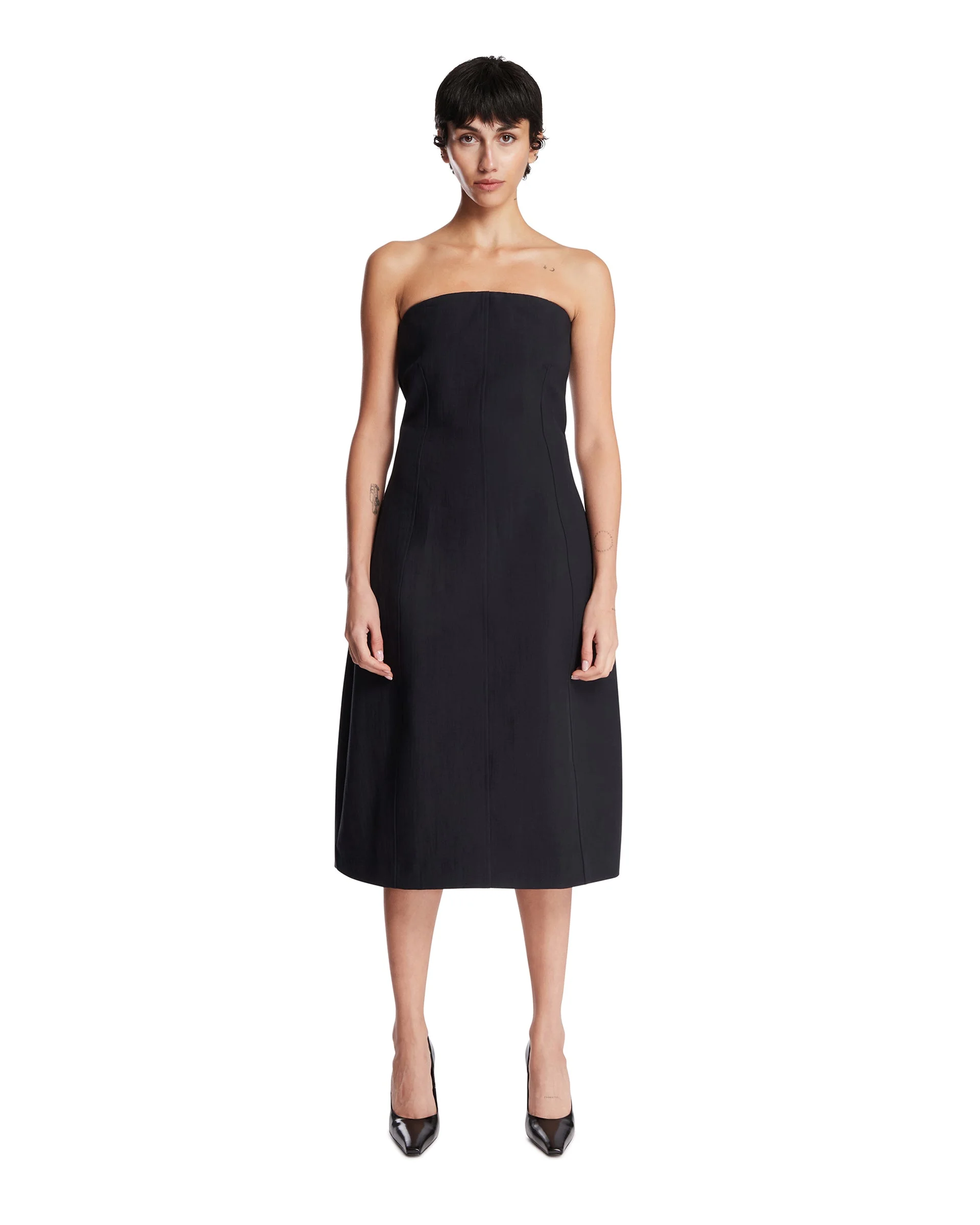 Studio Nicholson Blue Aude Midi Dress in Wool. Blue wool, sleeveless design with an internal corset and boning for structure. Sculpted silhouette and strapless design. Anis is 178 cm and she is wearing size 40. DETAILS Model: AUDESNW1698DAN Composition: 100% Wool Made in: PORTUGAL Season: FW25-26