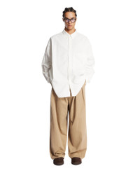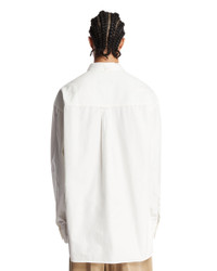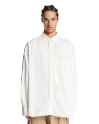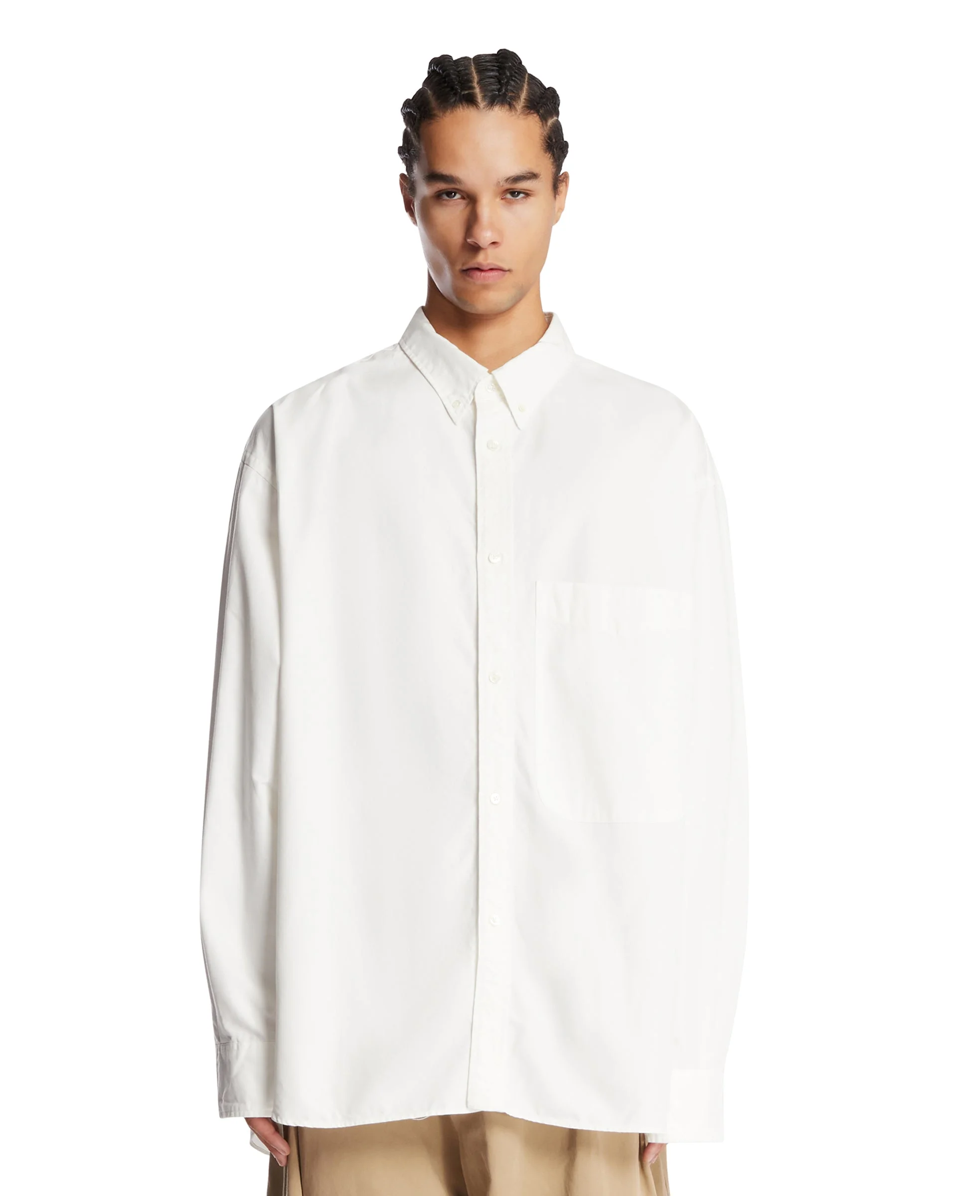 Studio Nicholson White Cotton Shirt. White cotton, button-down collar, long sleeves, front button closure. Buttons on cuffs, dropped shoulder design, chest pocket. Rounded hem, relaxed fit. Thiago is 185 cm and he is wearing size XL. DETAILS Model: BPSN110101W Composition: 100% Cotton Made in: JAPAN Season: FW25-26