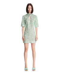 Taller Marmo Green Delphi Disco Mini Dress. Green-tone sequins, short sleeves, mandarin collar with a keyhole neckline. Jewel button, front zip closure, straight hem. Regular fit. Alicia is 173 cm and she is wearing size 40. DETAILS Model: TMPF2528905 Composition: 100% Polyester Made in: ITALY Season: FW25-26