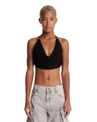 The Attico Black Halter Neck Top. Black viscose blend, corded draping effect, neck and back tie with a logoed buckle. Carol is 178 cm and she is wearing size 40. DETAILS Model: 251WCI00028KVV016AA100 Composition: 83% Viscose, 17% Polyamide Made in: ITALY Season: FW25-26